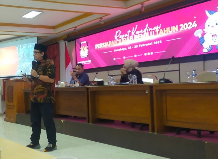 Pasuruan- Dalam rangka mensukseskan pelaksanaan Kirab Pemilu Tahun 2024, Komisi Pemilihan Umum Propinsi Jawa Timur menyelenggarakan Rapat Koordinasi Persiapan Kirab Pemilu Tahun 2024 di Kantor KPU Provinsi Jawa Timur (22-23/02/2024).