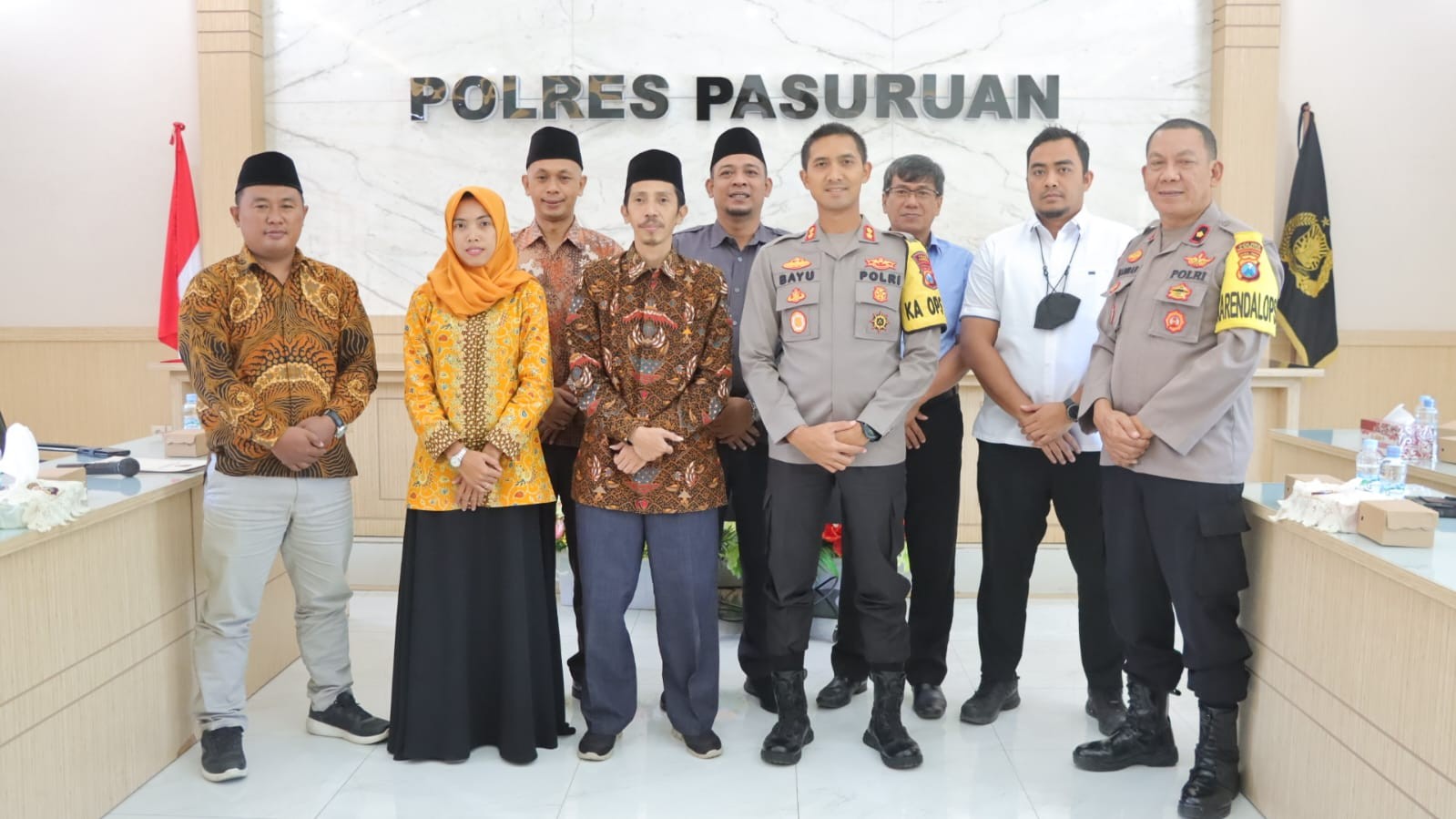 Kapolres Pasuruan, AKBP Bayu Pratama Gubunagi, S.H., S.I.K., M.Si., mengapresiasi kedatangan Ketua bersama seluruh anggota KPU Kabupaten Pasuruan dalam kegiatan audiensi ini. Kapolres Pasuruan, AKBP Bayu Pratama Gubunagi, S.H., S.I.K., M.Si., menyampaikan bahwa untuk mewujudkan pelaksanaan tahapan penyelenggaraan Pemilu yang aman dan kondusif, dibutuhkan koordinasi sejak dini untuk mengantisipasi terjadinya potensi kerawanan.