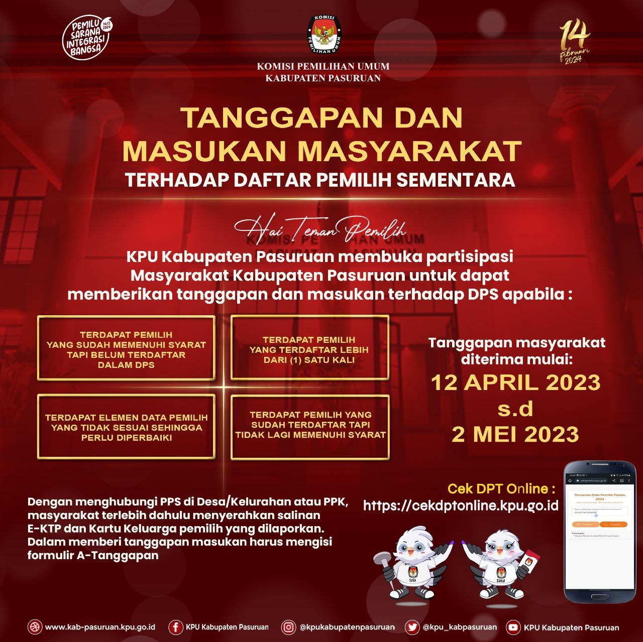 TANGGAPAN DAN MASUKAN MASYARAKAT TERHADAP DAFTAR PEMILIH SEMENTARA PEMILU 2024
