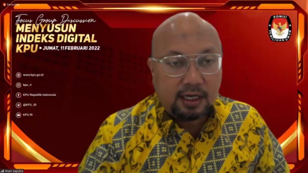 “Dalam menyusun indeks digital KPU, yang perlu menjadi perhatian khusus adalah mengetahui pentingnya pemahaman literasi terhadap digitalisasi itu sendiri. Untuk kemudian secara detil mendalami, apa itu digitalisasi dan bagaimana digitalisasi itu bekerja. Dalam menyusun indeks digital KPU harus memastikan, apakah hal itu sudah cukup baik atau mumpuni dalam konteks mengefektifkan penyelenggaraan Pemilu dan Pemilihan Tahun 2024 yang akan datang,” urai Ilham.