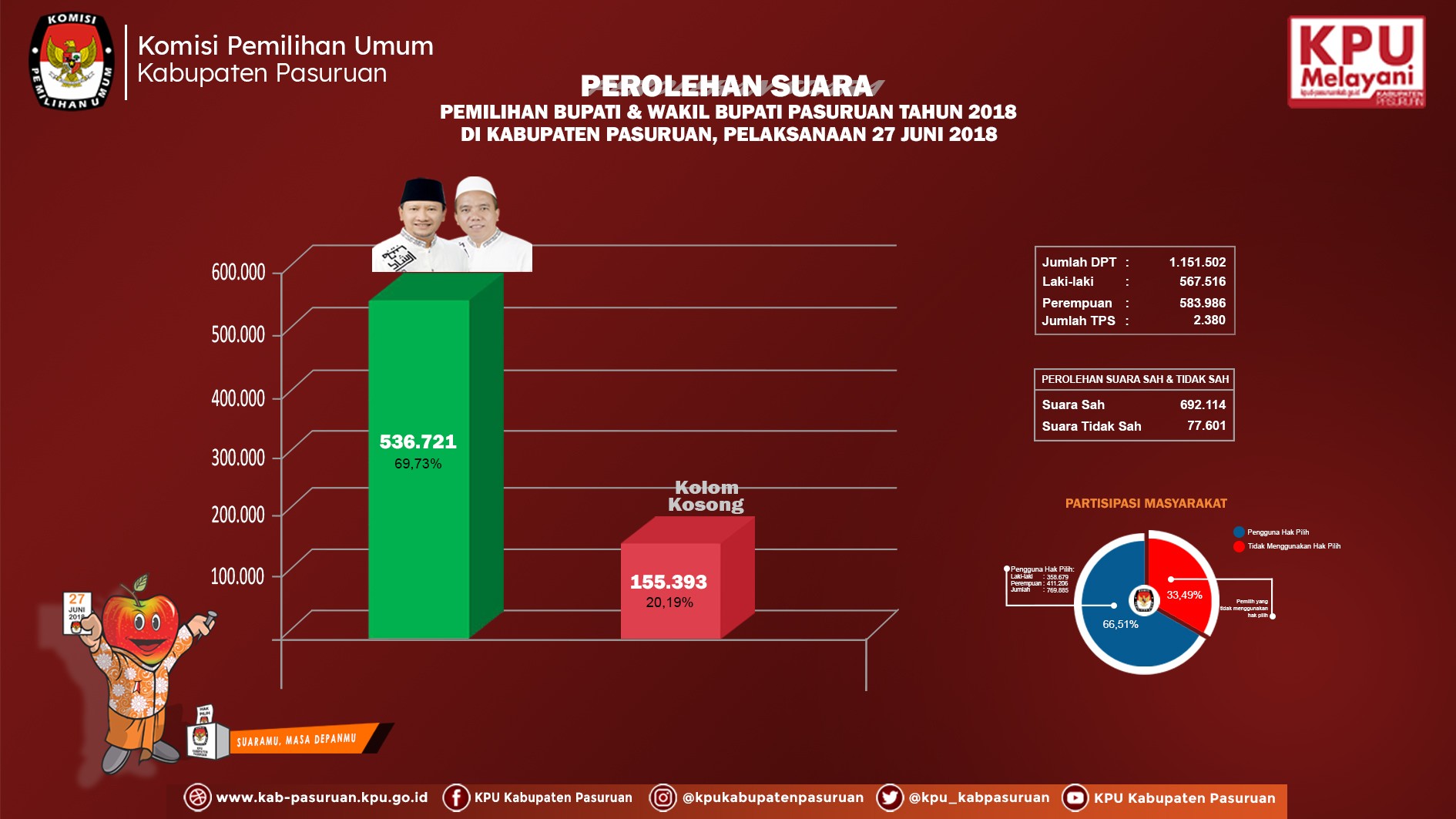 Berikut info grafik Pemilu dan Pemilihan di Kabupaten Pasuruan: